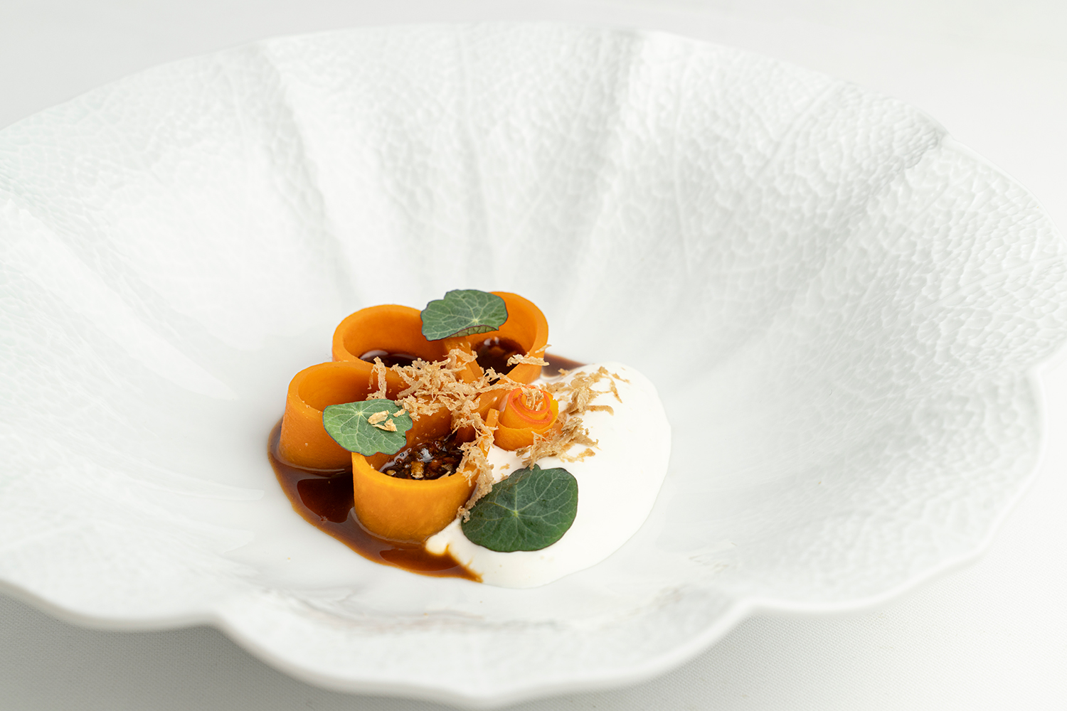Famous for its gardens, the Domaine de Villandry evokes the reign of nature and plants. These gardens inspired us a smooth coupe plate, a large finely-ribbed serving platter and two ornate gravy boats to complete the service.